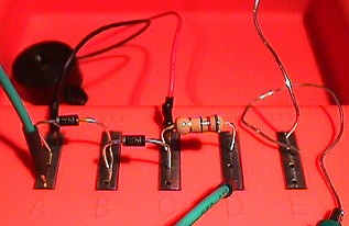 Der Summer aus dem Baukasten erzeugt einen sehr lauten Ton, was für Alarmanlagen gerade richtig ist. Bei einigen anderen Spielen wie z.B. beim Zittertest hätte man es lieber etwas leiser. Luci hat an Stelle des Summers eine Lampe eingesetzt. Allerdings reagiert sie nicht so schnell auf ganz kurze Verbindungen. Laura und Amelie haben das Problem mit Hilfe ihres Papas so gelöst: