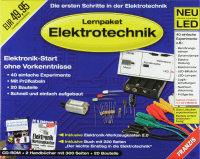 Das Lernpaket Elektrotechnik behandelt die Grundlagen der Elektrizitätslehre und der Elektrotechnik. Es eignet sich für Einsteiger und für den Unterricht an allgemeinbildenden Schulen. Einfache Versuche mit Batterie, Widerständen, LEDs und einem Elektromotor werden mit Prüfkabeln aufgebaut. Zusätzliche Versuche mit Kondensatoren, einer Si-Diode und einem Transistor schaffen den Übergang in die Anfänge der Elektronik. Ein Schwerpunkt des Lernpakets ist die Vermittlung des richtigen Umgangs mit Messgeräten.
