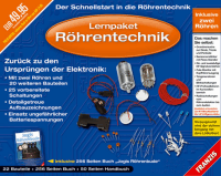 Das Interesse an der Röhrentechnik nimmt zu. Deshalb hat der Franzis-Verlag auch hierzu ein Lernpaket aufgelegt. Es basiert auf zwei Batterieröhren 2SH27L. Alle Versuche werden mit Akkus und Batterien durchgeführt. Die Themen reichen von den Grundfunktionen der Röhre über NF-Verstärker und Oszillatoren bis zum Aufbau einfacher Radios. Anders als bei den anderen Lernpaketen werden die Versuche hier mit dem Lötkolben aufgebaut.