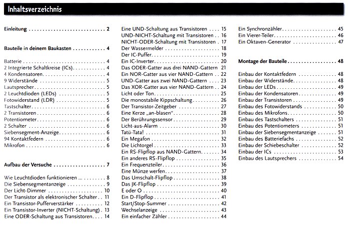 Die Versuche aus dem Handbuch beginnen ganz einfach und werden dann komplizierter. Im hinteren Teil des Handbuchs findet man Schaltungen, die auch für manchen Fachmann eine Herausforderung darstellen können. Der Baukasten fordert einiges an Ausdauer und Geschick der Kinder. Man kann sich also durchaus länger mit dem Thema beschäftigen. Und wer die Grundlagen verstanden hat, kann durchaus ganz eigene Versuche mit dem Material durchführen.