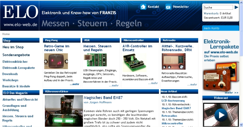 Stand Mitte Januar 2010: Die Seite sieht jetzt ganz anders aus. Inzwischen gibt es über 500 Artikel.