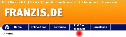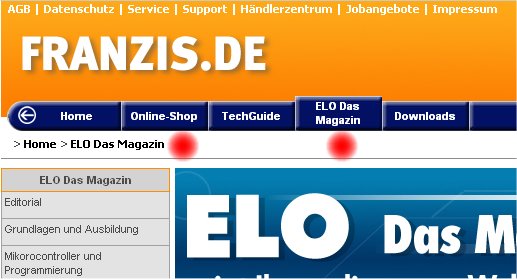 Rufen Sie die Franzis-Startseite auf: www.franzis.de In der blauen Leiste sehen Sie ELO Das Magazin. Ein Klick bringt Sie in die ELO-Startseite.
