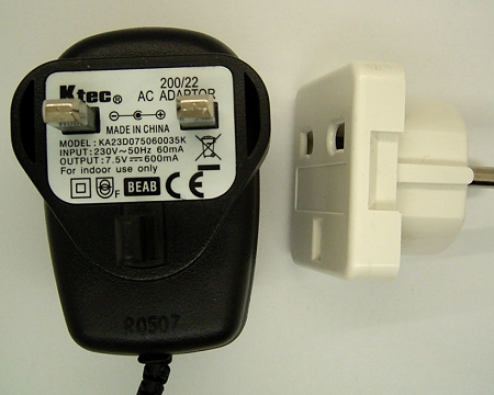 passendes Steckernetzteil dabei, zusammen mit einem passenden Adapter.