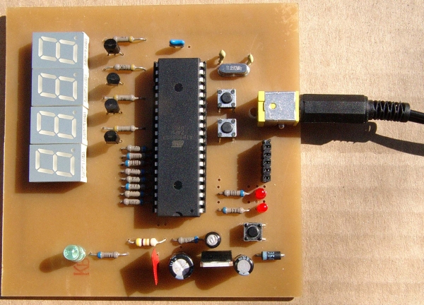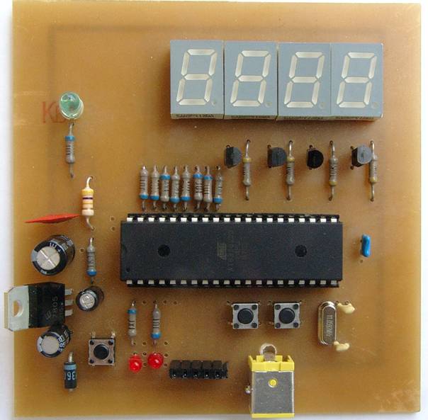 betragen. Dann LED`s und 7-Segment-Anzeigen mit Widerständen und Transistoren einlöten sowie den 40-pol.