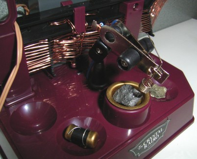 Der Kristall liegt in einer kleinen Messingwanne und wird durch eine verstellbare Stahlfeder berührt. Mit vorsichtigem Probieren findet man eine aktive Stelle. Es hat sich bewährt, zuerst die Germaniumdiode einzusetzen und den Schwingkreis auf einen gewünschten Sender abzustimmen. Mit einem natürlichen Kristall wird das Radio dann etwas leiser und schwieriger einzustellen.