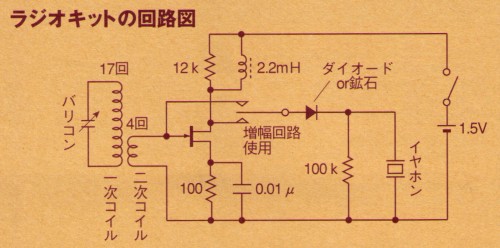 Der Empfänger arbeitet mit dem Umschalter in der oberen Stellung als normaler Detektorempfänger. Die andere Stellung schaltet einen HF-Vorverstärker zu. Die Spannungsverstärkung ist etwa vierfach. Bei korrekter Polung der Diode erreicht man eine kleine Vorspannung und eine verbesserte Demodulationsempfindlichkeit. Der Kristallhörer ist im Schaltplan wie ein Quarz gezeichnet.