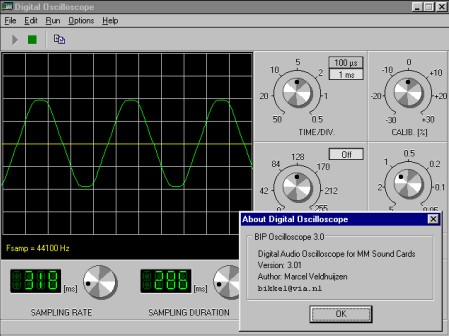 Als Messgerät diente ein PC-Oszilloskop mit der Soundkarte. Das Programm (scope.zip, 150 KB) stammt von Marcel Veldhuijzen.