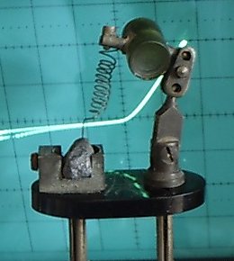 Mit den Kristallen war es nicht so einfach. Man muss einige Zeit rumstochern, bis man ein Ergebnis hat. Mit einer Nadel sucht man dabei verschiedene Regionen des Kristalls ab. Zuerst gelang es mit dem Pyrit-Kristall. Allerdings ist das Ergebnis nicht so überzeugend wie bei einer Germanium-Diode.