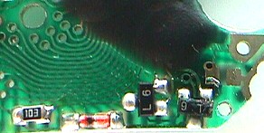 Auf der Platine sind auffällig viele Transistoren. Und auf der Rückseite findet man sogar zwei kleine Spulen, eine für den EL-Spannungswandler und die andere für den Piezopiepser. Also jetzt müsse man es nur noch schaffen, das ganze auch mal einzuschalten.
