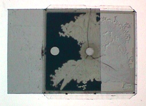 Diese besonderen Folien sind Polarisationsfilter. Sie lassen nur Licht mit einer Schwingungsebene hindurch, also von normalem Licht nur die Hälfte. Legt man die andere Folie in anderer Richtung darüber, kommt fast nichts mehr durch. Durch Drehen eines der beiden Filter kann das Licht stufenlos geregelt werden, ein optischer Dimmer.