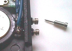 Einmal scharf hingeschaut, dann ist klar, an welchen beiden Anschlüssen die Gleichtaste liegt. Nun fehlen nur noch zwei externe Anschlüsse. Bewährt haben sich für solche Fälle gedrehte Kontakte für IC-Fassungen. Die kann man einfach mit dem Lötkolben heiß durch das Plastikgehäuse braten. Aber nicht mit der verzinnten Lötspitze, sondern mit dem Heizelement, damit man die Buchse nicht gleich zulötet. Die Anschlüsse sind dann sehr fest und stabil eingebaut.