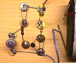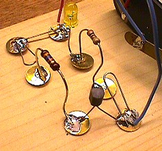 Wer in einer Jugendgruppe mit der Elektronik anfangen will, der muss sich einfache Versuche ausdenken, die mit wenig Aufwand sofort zu kleinen Erfolgen führen. Hier ein Vorschlag mit einer Brotbrettschaltung, die von ganz klein immer etwas weiter wächst. Es fängt an mit einer Leuchtdiode, einem Widerstand (100 bis 1000 Ohm), einer Batterie und einem selbst gebauten Schalter.