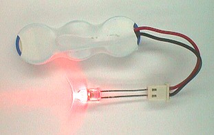 Der Nennstrom der Lampe beträgt ca. 5 * 20 mA = 100 mA, sie ist also wesentlich sparsamer als eine Glühlampe. Bei einem Akku mit einer Kapazität von 1800 mAh beträgt die Brenndauer rund 18 Stunden. Man kann zur Probe einmal nachrechnen, wie sich die Lampe verhält, wenn die Akkuspannung nachlässt. Bei nur noch 1,1 V pro Akkuzelle ist der Akku bereits zu etwa 90 % entladen. Die Gesamtspannung beträgt 4,4 V, die LED-Spannung ist aber trotz des geringeren Strom immer noch fast unverändert 3,6 V. Der Spannungsabfall ist also nun 0,8 V. Daraus kann man einen Strom von ca. 14 mA berechnen. Die Helligkeit hat nur um ca. 1/3 abgenommen. Noch ein Vorteil für den praktischen Einsatz: Wenn der Höhlenforscher wider Erwarten mal den Ausgang nicht mehr findet, ist die Lampe auch nach der normalen Betriebsdauer nicht plötzlich aus, sondern sie wird allmählich schwächer. Auch bei nur noch 10 % der Nennstromstärke kann man noch etwas sehen.