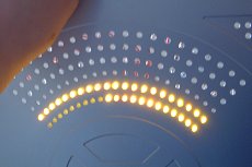 Spielfläche. Wenn die Antwort stimmt, leuchtet die LED. Man