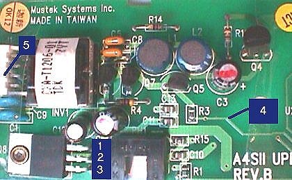 Hannes Nordmann hat an einer gleichen Platine experimentiert und gefunden, dass am Punkt 4 ein Widerstand nicht nach Masse, sondern nach +UB gelegt werden muss. Daraufhin habe ich an meiner doppelten Fotolampe noch mal nachgesehen, es stimmt. Also nicht nach Masse, sondern nach +5V oder +12 V muss der Widerstand.
