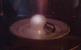Eigentlich nicht empfehlenswert, aber ich konnte es nicht lassen. Eine durchgebrannte Glühlampe entwickelt im Mikrowellenherd ein intensives Plasmaleuchten. Allerdings ist die Leistung zu groß. Es wird immer heller, und schon nach wenigen Sekunden beginnt das Glas zu glühen. Dann habe ich ganz schnell ausgeschaltet, bevor die Lampe platzen konnte und das Gerät beschädigt hätte.