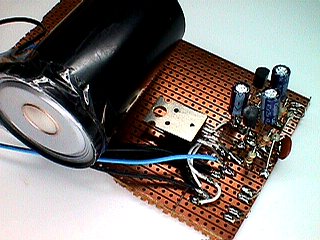 Der 32-Ohm-Bassbooster befindet sich in einer Filmdose. Der gewaltige Klang erinnert an wesentlich größere Bassreflexboxen. Allerdings wird dies mit einer erheblichen Erwärmung des Klasse-A-Endstufentransistors erkauft.