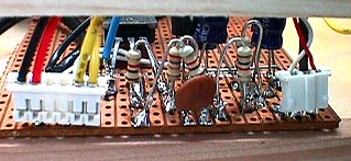 Auf der Streifenplatine wurde abgewinkelter Schaltdraht zu Stiftleisten verarbeitet, auf die ganz genau die originalen Anschlusskabel passen.