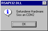 Abbildung 3 zeigt das Fenster die Meldung der Funktion FindHard. Mit dieser Funktion kann nun mit gleichem Erfolg auch die ZELLE, das CompuLab oder die MiniRS-Box eingesetzt werden. Die DLL merkt sich intern das gefundene Interface und verwendet automatisch die passenden Komandobytes.