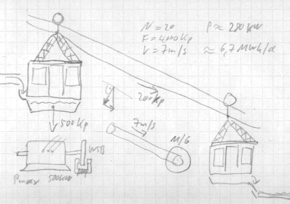 | Gleich zu Anfang meiner Lektüre der Aufzeichnungen des Ingenieurs ist mir aufgefallen, dass das Thema Seilbahn regelmäßig wiederkehrt. Er rechnet Energiebilanzen, Konstruktionsdaten und Belastungen der Anlage wiederholt durch, als würde er einen Fehler vermuten. Immer wieder kommt er zu exakt den gleichen Ergebnissen, woraus man schließen kann, dass seine Sorge unberechtigt ist. Trotzdem tauchen die Rechnungen spätestens alle zwei Jahre erneut auf, insgesamt mehr als zehn mal. Gleichzeitig geht aber aus den Aufzeichnungen hervor, dass regelmäßige Zahlungen von der Seilbahn eingehen, so dass man zu dem Schluss kommen muss, alles habe problemlos funktioniert. Warum also ist Drahtlos derart verunsichert? Im Zusammenhang mit der Seilbahn taucht zum ersten mal ein Spruch auf, den ich für bezeichnend halte. |