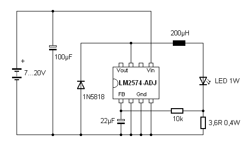 Vout des Schaltreglers LM2574 liegt nicht, wie fälschlich in den Schaltbildern zu lesen, an