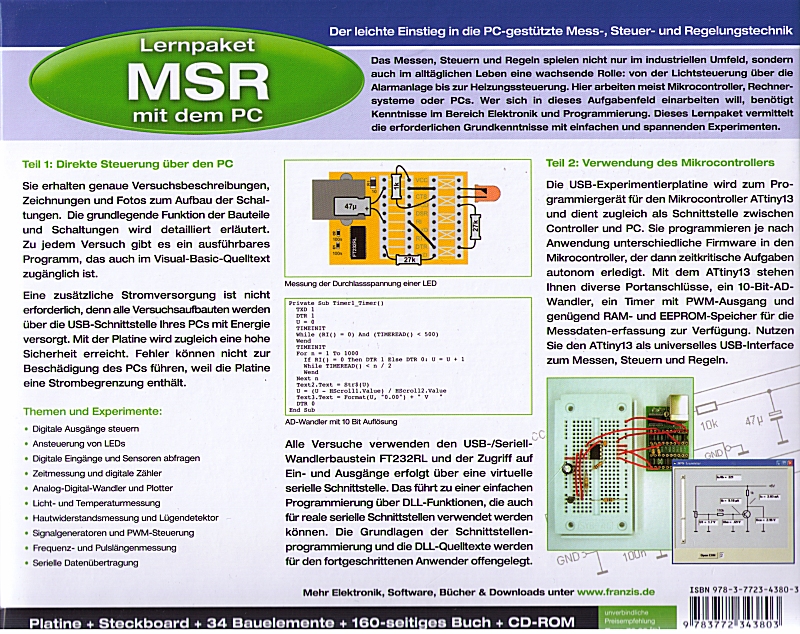 Messen, Steuern und Regeln sind die Schlagworte der industriellen Nutzung des Computers. Aber auch im Hobbybereich spielt die MSR-Technik eine entscheidende Rolle. Manch einer entwickelt Roboter, automatische Steuerungen für Haus und Hof oder elektronische Schaltungen oder Mikrocontroller-Systeme für unterschiedliche Aufgaben. Nur, wie findet man den Anfang? Wie lernt man den Umgang mit elektronischen Bauteilen oder mit eigenen Programmen? Dieses Lernpaket will den Einstieg erleichtern.