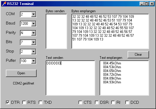 Zusätzlich muss die DTR-Leitung eingeschaltet werden. Sie