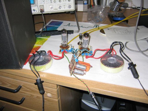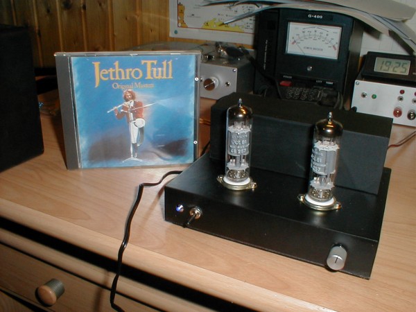 Das ganze ist jetzt jedenfalls schreibtischtauglich. Die elektrische Sicherheit liegt im Steckernetzteil. Der Verstärker wird auch nicht besonders heiß. Anodenverlustleistung rund 1 Watt pro Kanal. Am meisten heizen die Kathoden.