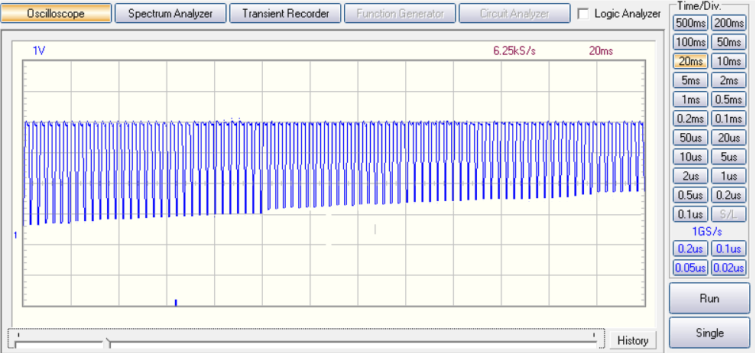 Am Kollektor entstehen zuerst große Impulse, die dann aber immer schwächer werden, weil nicht mehr genügend Basisstrom fließt.