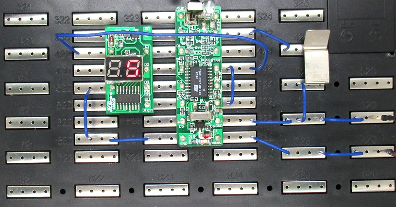 Weiß deine innere Uhr genau, wie lang fünf Sekunden sind? Bei diesem Programm musst du genau fünf Sekunden auf den Taster drücken. In dieser Zeit zeigt die Anzeige null an. Wenn du die Taste loslässt, wird die gemessene Zeit anzeigt. Hast du zu kurz oder zu lang gedrückt? Dann kommt gleich der nächste Versuch. Und du kannst auch andere Zeiten bis zu neun Sekunden probieren.