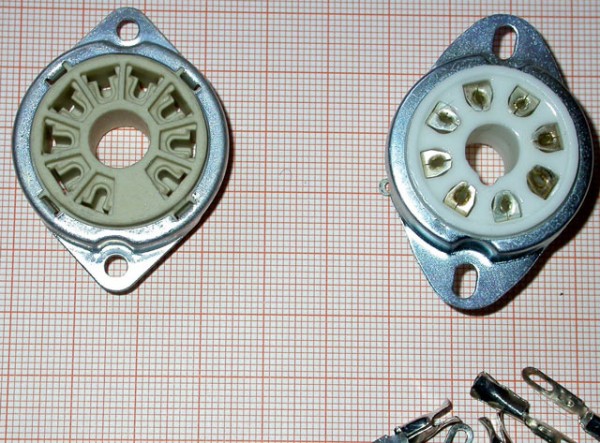 Die Kontakte müssen dann noch mit einem kleinen Uhrmacherschraubendreher etwas aufgedehnt werden, da die Stifte der 12SH1L nur andeutungsweise angespitzt sind und die Röhren sich so nur sehr schwer einsetzen lassen.